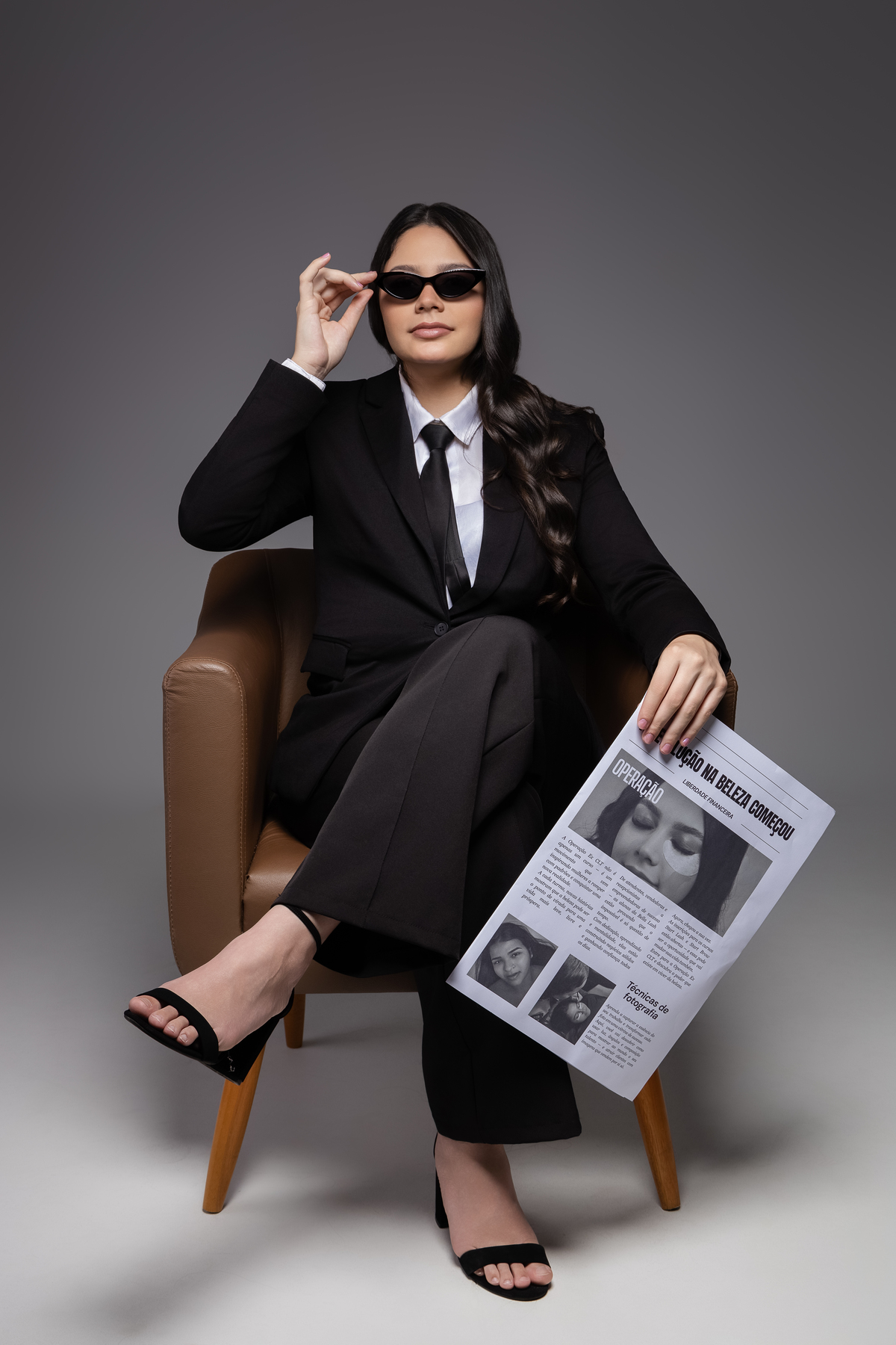 Nesta operação, ela assume o papel de uma verdadeira agente da beleza: confiante, focada e preparada para transformar olhares e elevar autoestima. Cada detalhe, do terno impecável ao olhar por trás dos óculos escuros, representa a força de quem domina o próprio campo de atuação.