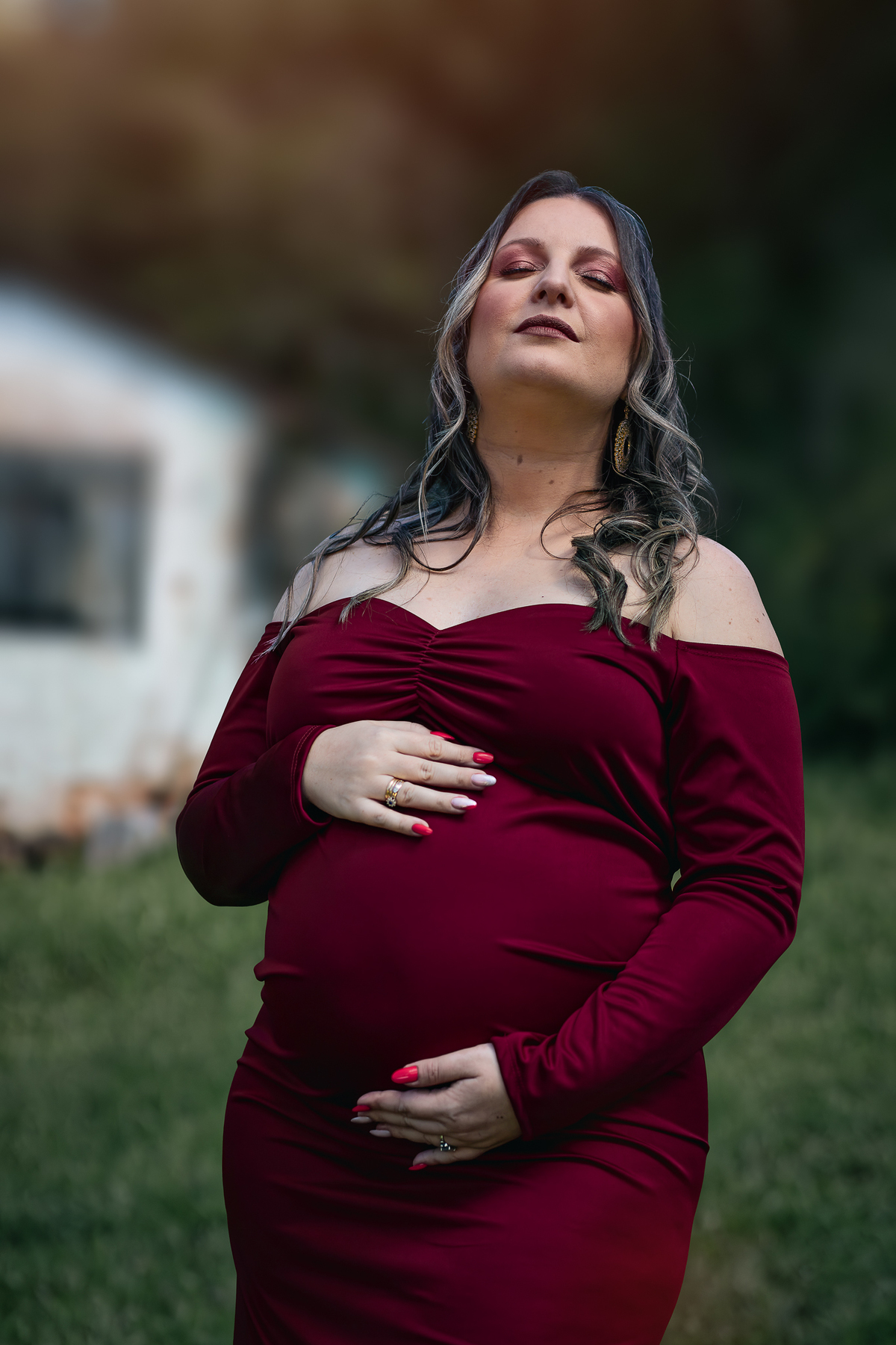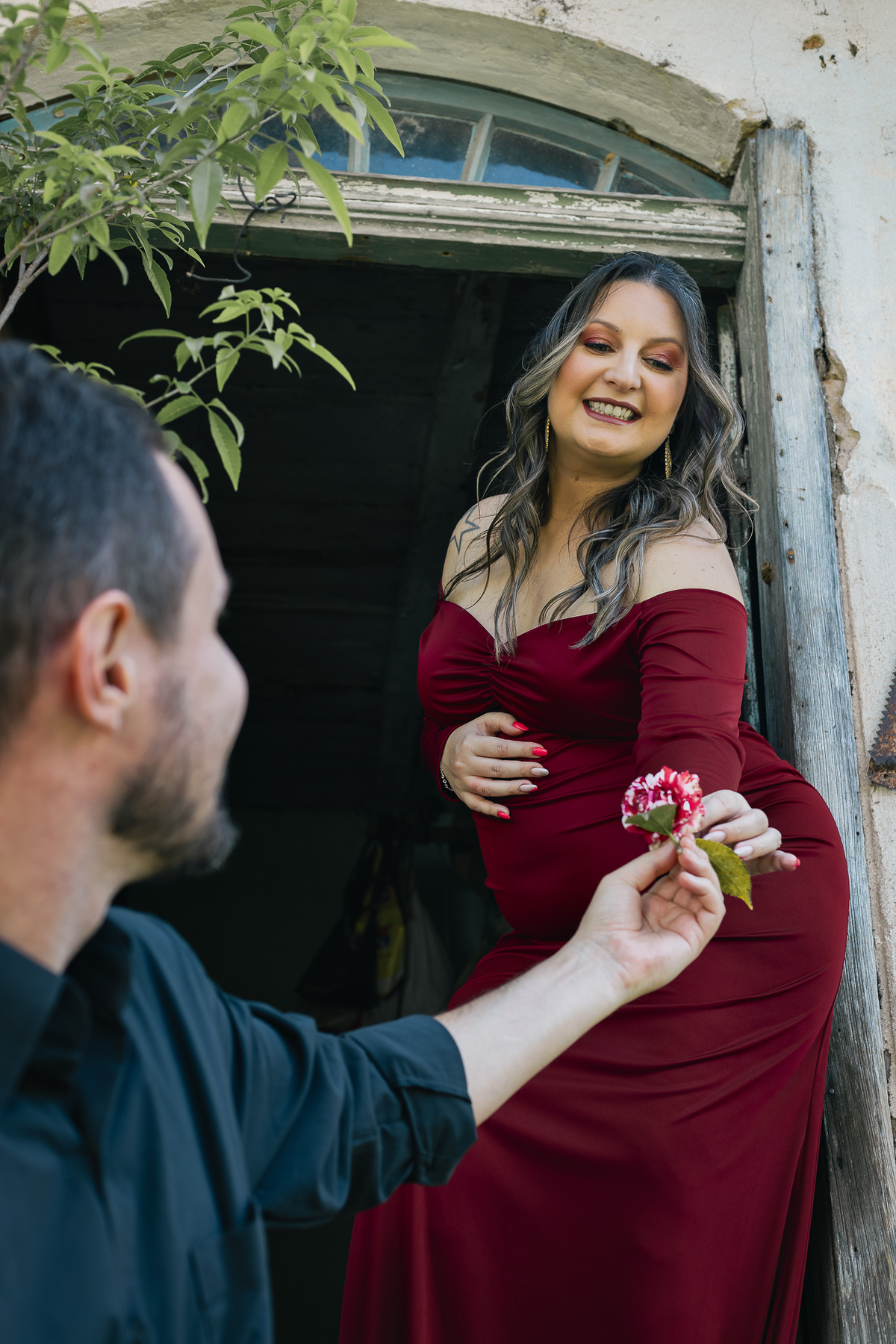 A casa dos avós, a escada, o rio… Nada foi por acaso. Cada clique carrega não só a beleza da espera, mas também a conexão com o passado e a construção de um novo capítulo.