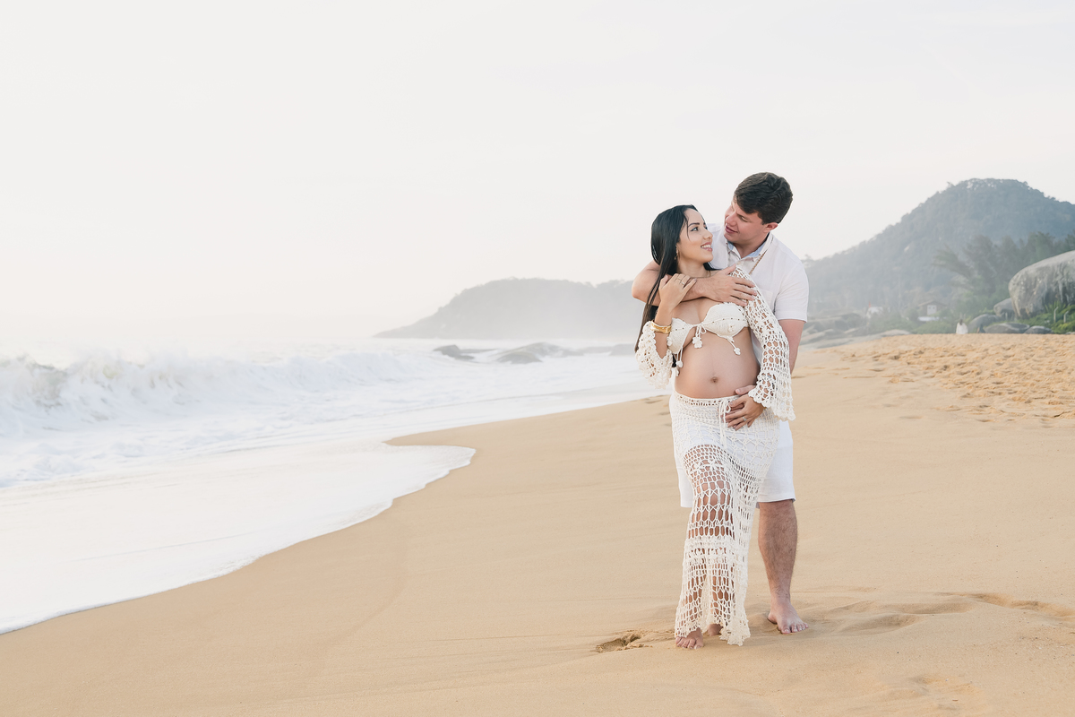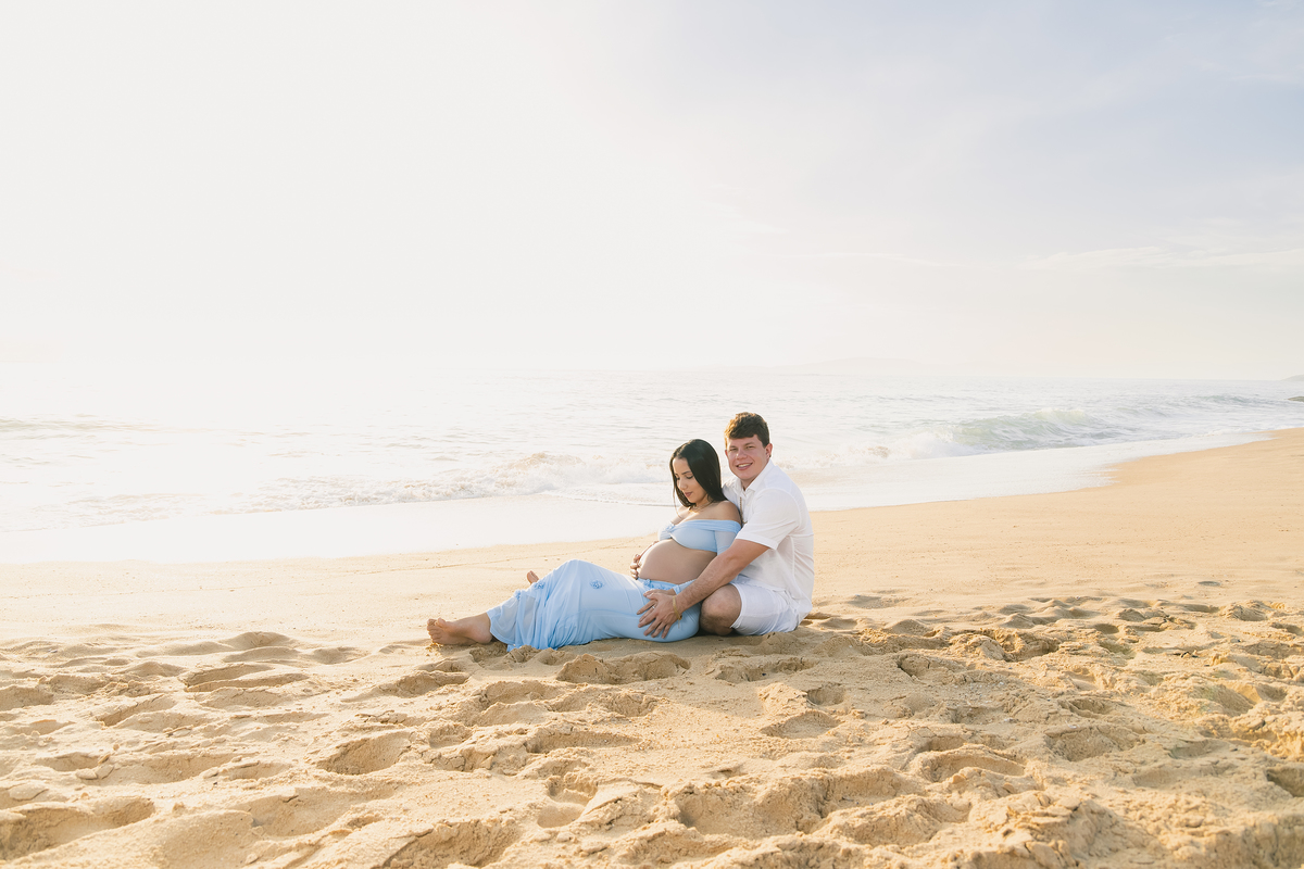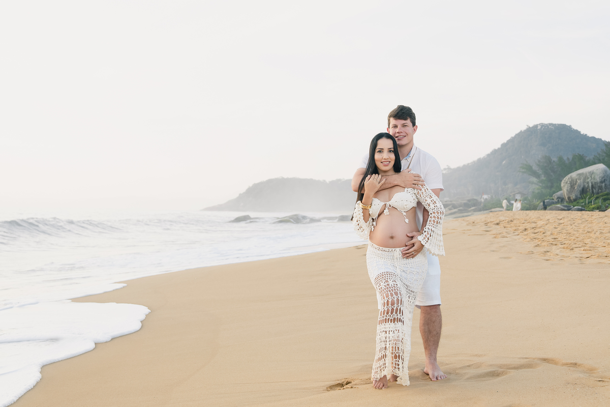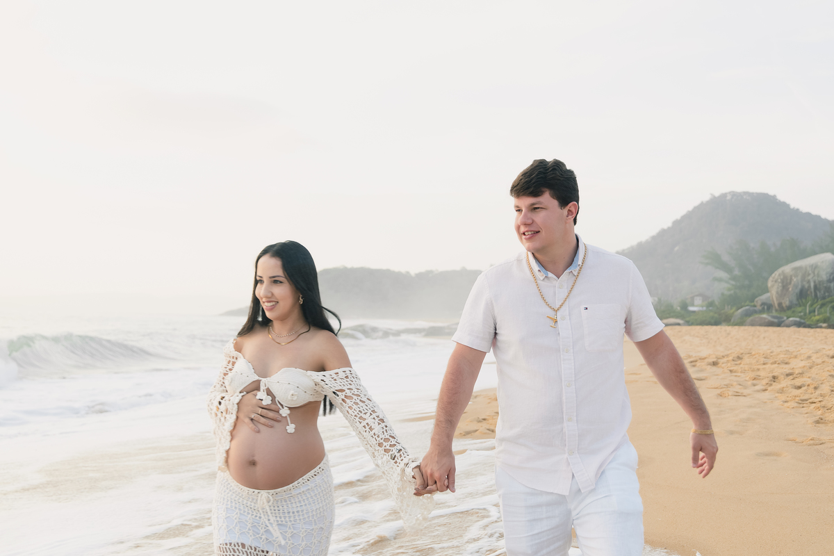 Mesmo não sendo da região, o casal escolheu Balneário Camboriú como destino de férias e, entre dias de descanso e conexão, decidiram eternizar um dos momentos mais especiais de suas vidas: a doce espera por Antonella.