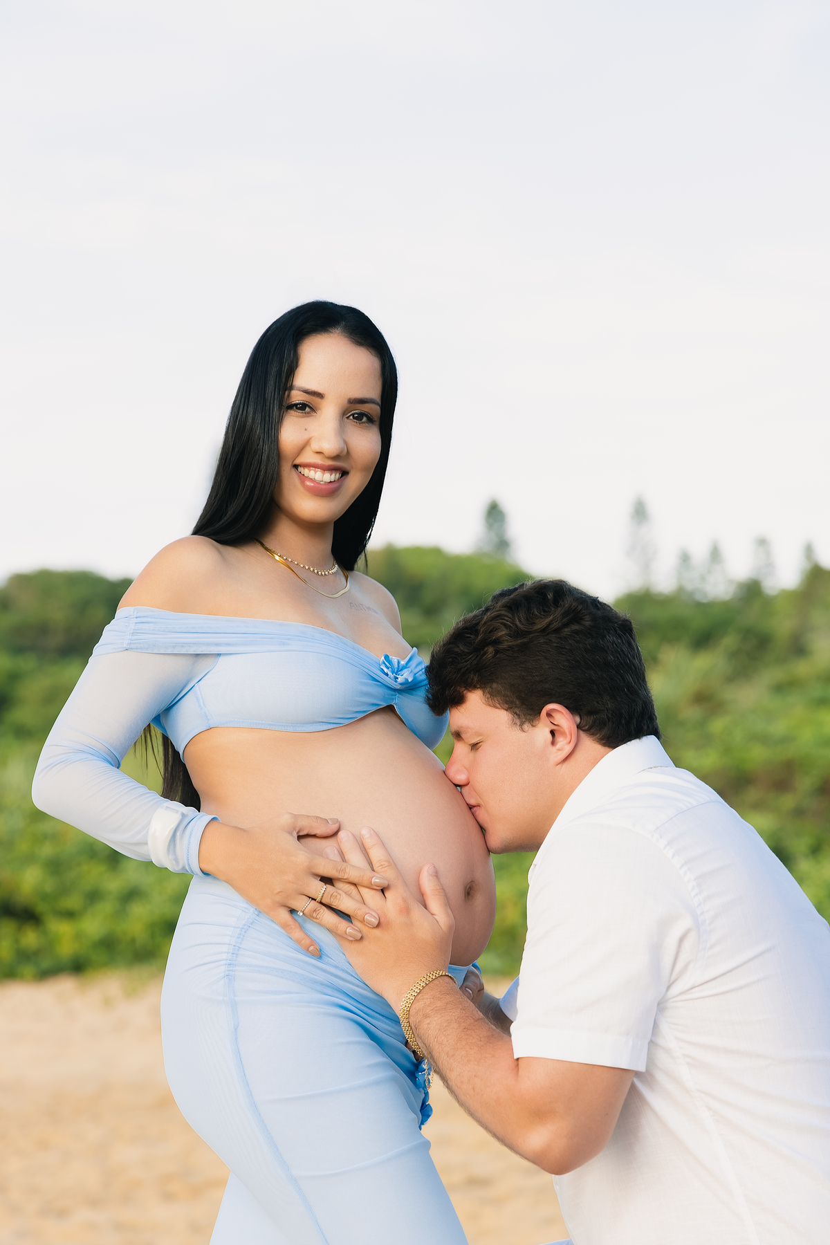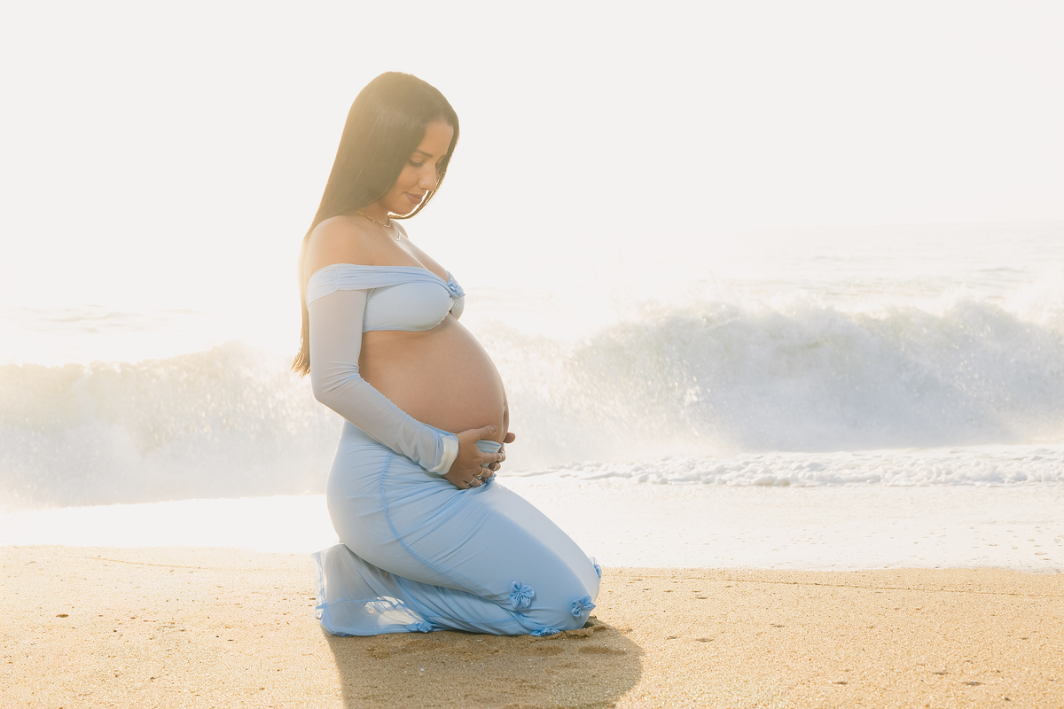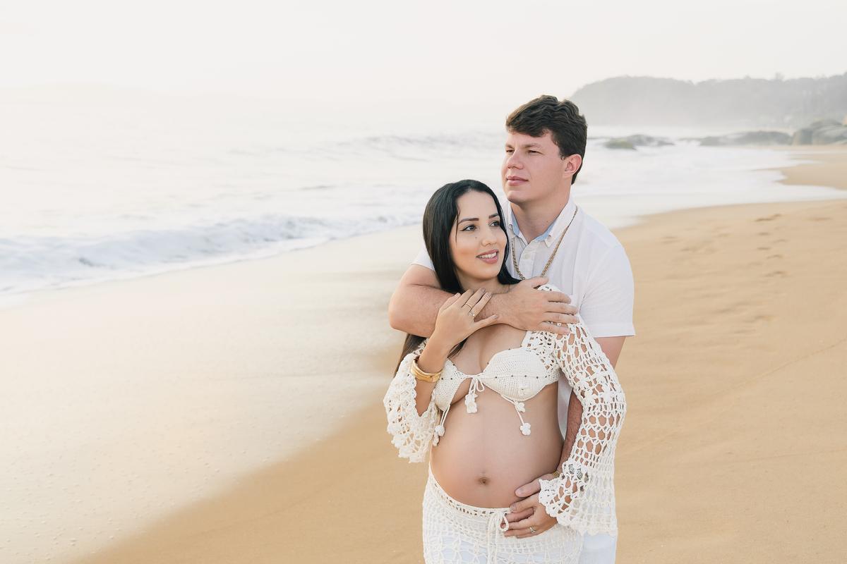Ensaios externos têm uma energia única. O vento leve, o som das ondas e a liberdade do ambiente criam uma atmosfera natural e espontânea — perfeita para capturar sentimentos verdadeiros. E foi exatamente isso que aconteceu: Tamara e Anthony não precisaram “posar”. Eles apenas foram quem são — um casal que se ama profundamente e que agora vive a expectativa do maior presente da vida.